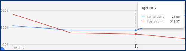 Most PPC campaigns have some level of “inefficiency” (go ahead and call it wasted dollars). Eliminating the expensive lead producers is an important optimization step that is needed regularly. After the first 30 days, we were able to weed out the underperforming elements of the PPC campaigns. This reduced the cost per lead from the original $35 all the way down to $13.66 (a drop of 61%) while keeping the number of leads at 21 (81% of what was collected at the full budget total).